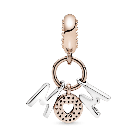 Charm colgante Mom letras de Recubrimiento en Oro Rosa de 14k