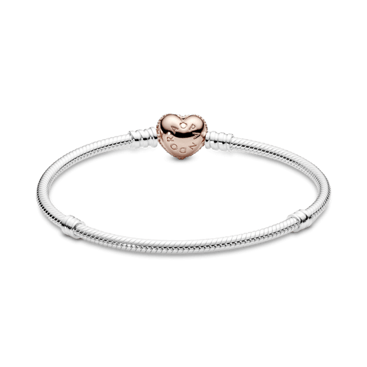 Brazalete cadena de serpiente con broche brillante de corazón en Recubrimiento en Oro Rosa de 14k